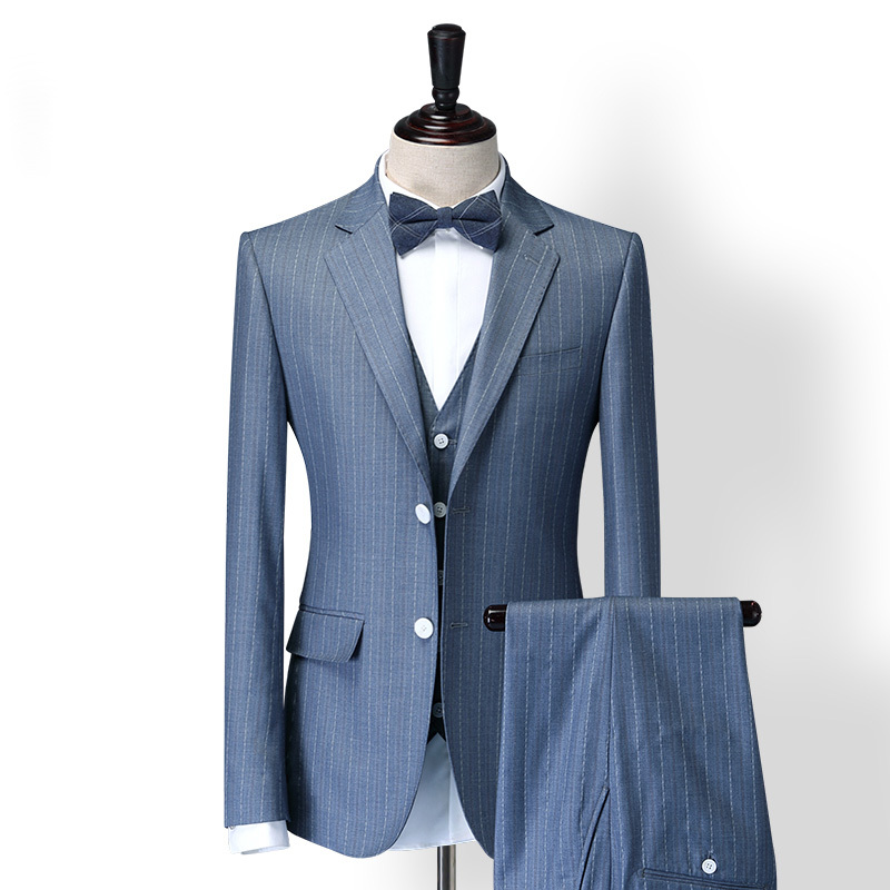 蓝色条纹商务休闲修身款职业正装
